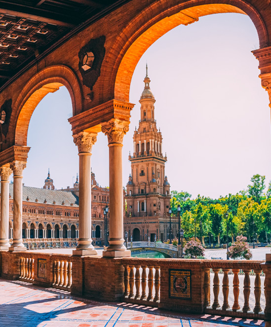 Breakfast, dinner and overnight at hotel. Morning guided tour to visit inside the Gothic Cathedral, the largest in Spain and third in the world, with the Giralda tower (striking minaret of the former mosque). Then a walk by Santa Cruz Quarter, a maze of small alleys and small squares with the peacefulness of a tiny garden is an invitation to rest. Afternoon at leisure.